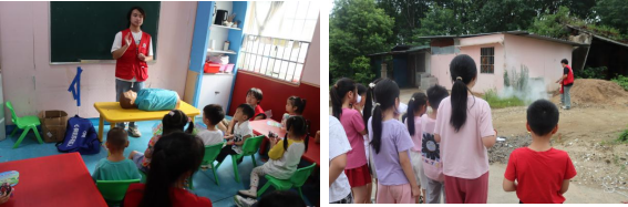 医心筑安,防范未然保平安。实践队结合生活实际场景,利用实物道具,深入浅出地讲解了火灾的成因、预防措施及应急逃生技巧,现场教学灭火器的使用方法。在溺水防范方面,通过真实案例剖析和人体模型演示,重点普及了防溺水“六不准”知识,并指导儿童进行心肺复苏(CPR)实操训练,确保动作规范有效。防火防溺水宣讲受众达80余人次,发放安全宣传扇子150余把,逃生湿毛巾80余条,有效提升了孩子们的安全防范与应急处置能力。