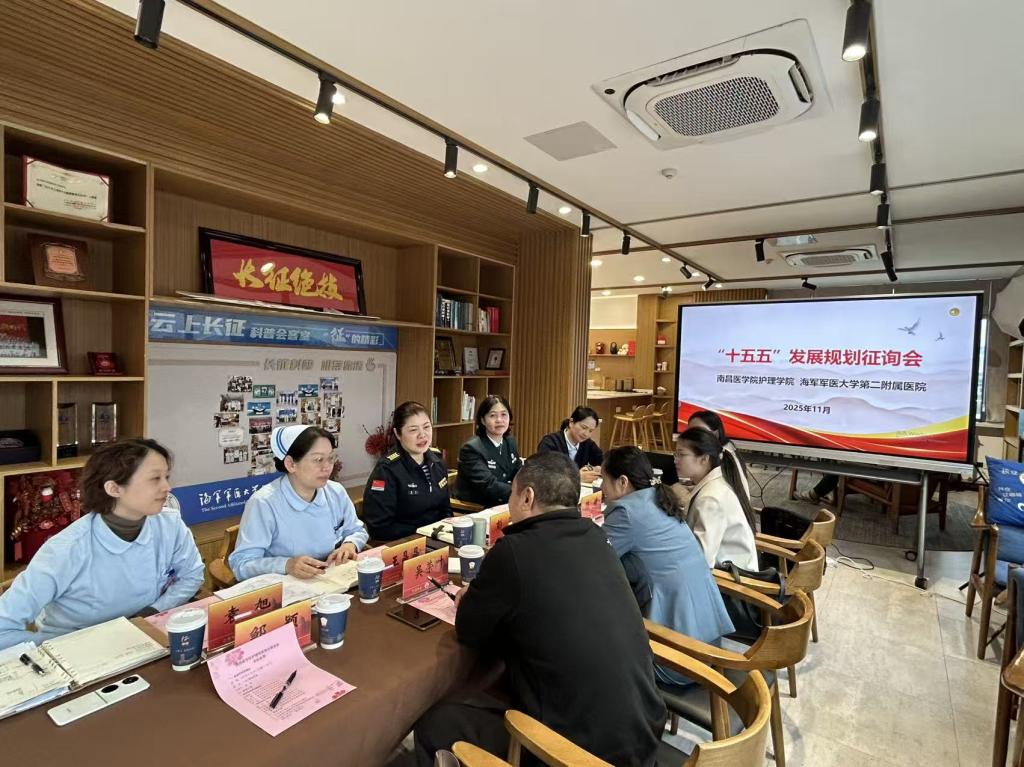 在与上海长征医院护理部多位专家的会谈中,双方重点围绕“急危重症监护护理特色班”的合作共建事宜进行了富有建设性的商讨。双方就特色班的人才培养目标、课程体系构建、师资互聘、临床教学实践以及未来学生的定向输送等关键环节交换了意见,并初步确立了合作框架与推进路径。同时对学院“十五五”发展规划进行了征询交流。