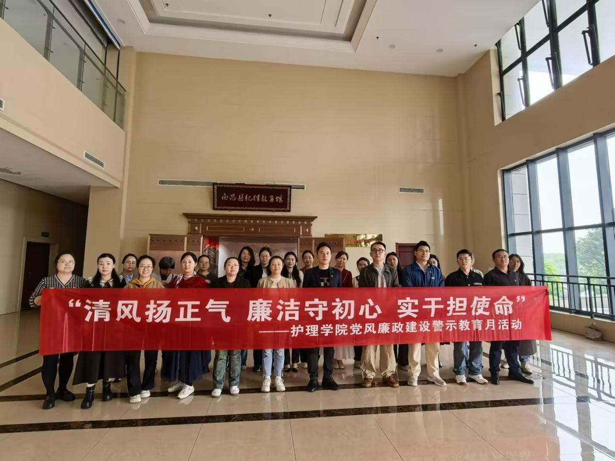 为推动2026年度党风廉政建设警示教育月活动走深走实,4月15日下午,护理学院党委组织全体党员教师前往南昌县廉政教育中心,开展“清风扬正气 廉洁守初心 实干担使命”主题实践参观活动。